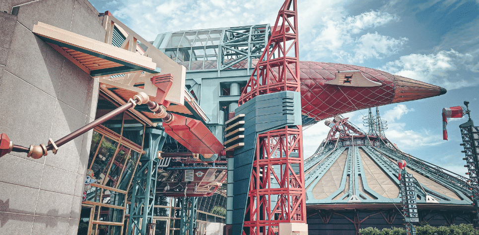 Café Hyperion, with a capacity of over 1,000, is the largest restaurant in Disneyland Paris. It’s located in the heart of Discoveryland, right next to the Vidéopolis showroom, offering a breathtaking view of the shows on offer. Discoveryland’s Jules Verne inspirations are reflected in the decor of this restaurant, with its red airship visible from the outside, the mythical symbol of the Vidéopolis theatre, its copper-toned clock and its metal structure. A visit to this restaurant will allow you to discover the world of Jules Verne while enjoying a good meal and, if you’re lucky, seeing a show at the same time.